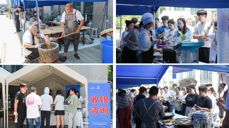 據(jù)悉,此次供銷市集特邀20余家臺州區(qū)域特色小吃商戶入駐,同時匯聚多家“媽媽的味道”品牌小吃、幫扶地區(qū)農(nóng)副產(chǎn)品攤位,旨在打造兼具公益性與煙火氣的消費(fèi)場景,為園區(qū)員工提供平價特色美食,助力區(qū)域特色小吃商戶拓展銷售渠道,推動民間美食品牌化發(fā)展?!案兄x供銷市集,感謝‘媽媽的味道’!我都快60了,還能夠?qū)W著用這些新技能和新平臺去宣傳我們的非遺美食。”攤主樓彩珠一邊制作著當(dāng)?shù)氐姆沁z玉米餅,一邊在手機(jī)直播中連連感謝。