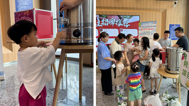 本次活動設(shè)置了“幸運(yùn)抽獎”和“消暑涼茶贈飲”兩大特色環(huán)節(jié)。消費(fèi)者單筆消費(fèi)滿10元即可憑當(dāng)日購物小票參與抽獎,獎品涵蓋落地扇、消費(fèi)滿減券等實(shí)用好禮。市場還特別準(zhǔn)備了安吉特色“六月霜”涼茶供消費(fèi)者免費(fèi)飲用,既解暑降溫,又喚起了本地居民的美好回憶。中獎消費(fèi)者還可憑券兌換咖啡或餐飲,提升購物體驗(yàn)。